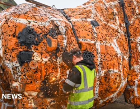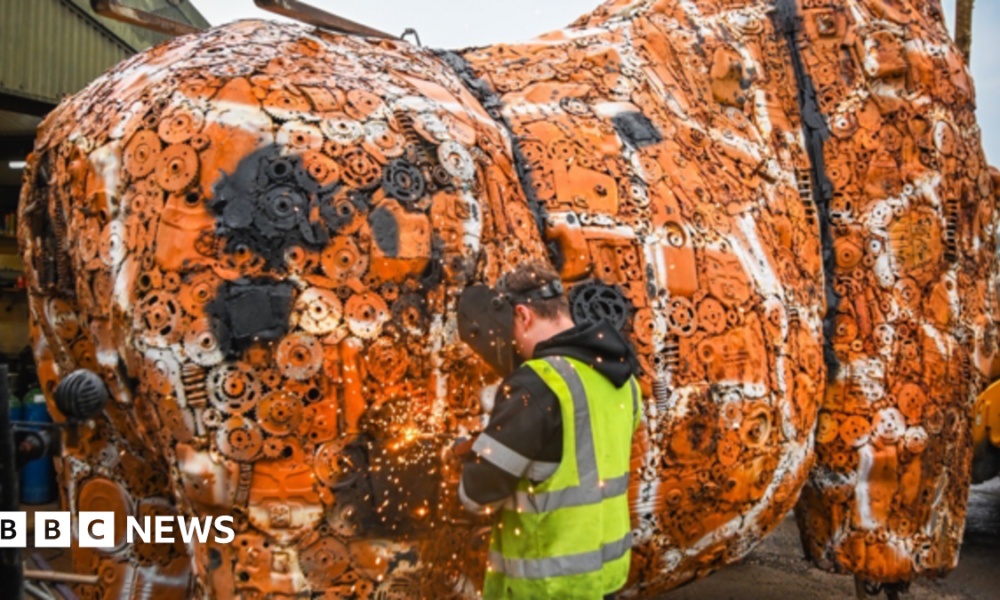 The towering figure, set to stand in the British Ironworks...