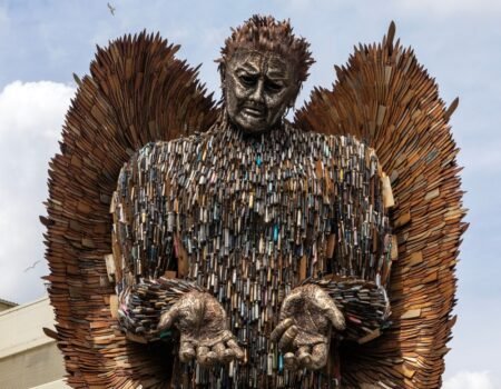 An awe-inspiring Knife Angel sculpture, made from over 100,000 seized blades,...